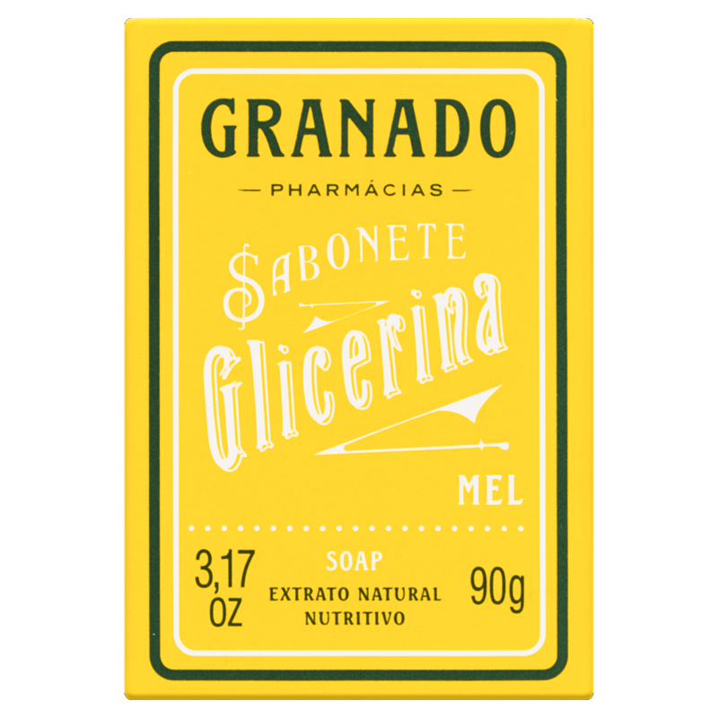 O Sabonete em Barra Glicerina Mel 90g da Granado é um sabonete em barra com fragrância suave de mel, indicado para a limpeza diária da pele do corpo e do rosto, adequado para todos os tipos de pele.