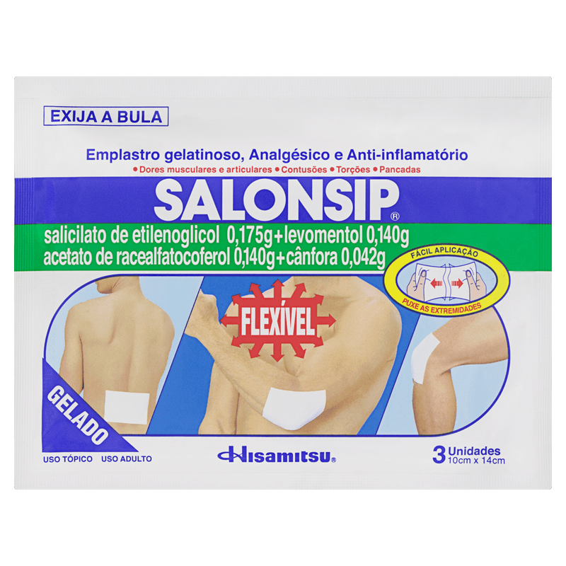 O Salonpasip é indicado para o alívio de dores e inflamações associadas a fadiga muscular, dores musculares e lombares, dores nas costas, rigidez nos ombros, contusões, pancadas, torções, entorses, torcicolo, nevralgia e dores articulares.