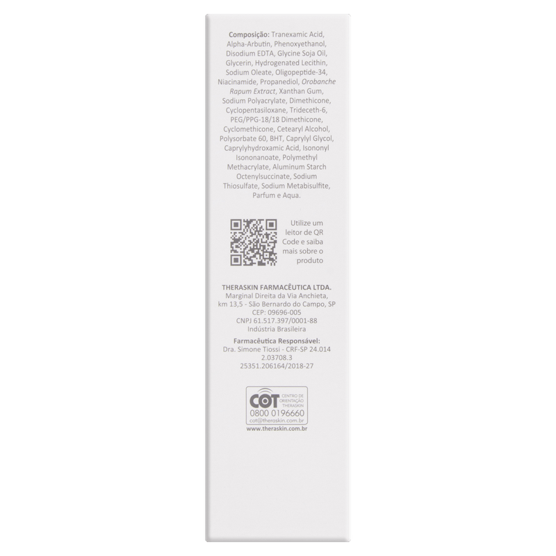 O Sérum Clareador Facial Klassis TX+ Theraskin é indicado para todos os tipos de pele, inclusive as mais sensíveis. Sua fórmula multifuncional combina Ácido Tranexâmico, Alfa-Arbutina, Niacinamida, Oligopeptídeo-34 e Revivyl, promovendo clareamento progressivo, uniformização do tom da pele e ação anti-inflamatória, antioxidante e antissinais.