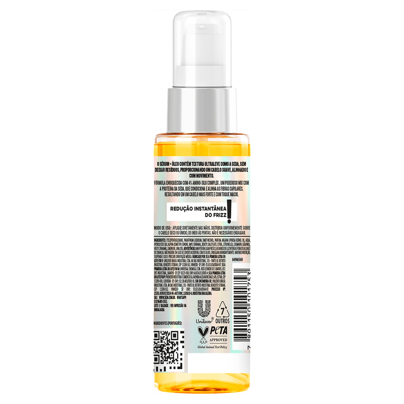 Modo de Usar: Após lavar e condicionar os cabelos, seque-os com uma toalha. Aplique o sérum uniformemente com os dedos por todo o comprimento dos fios, podendo ser usado em cabelos úmidos ou secos, sem necessidade de enxágue.