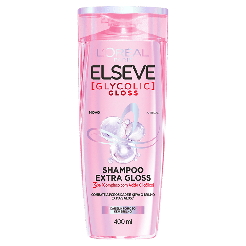 A linha Elseve Glycolic Gloss de L’Oréal Paris garante 3x mais gloss que resiste a 6 lavagens. Sua fórmula é rica em Ácido Glicólico e pH ácido, combatendo a porosidade e selando as cutículas para revelar um cabelo visivelmente saudável e alinhado para um brilho gloss.