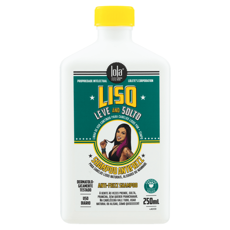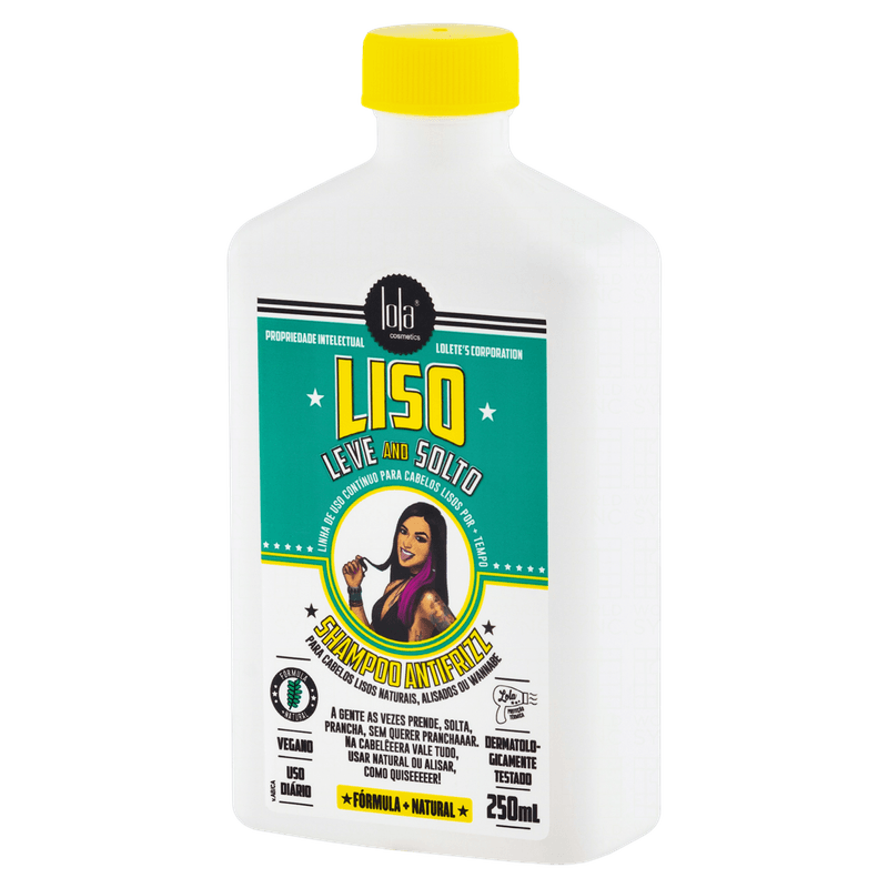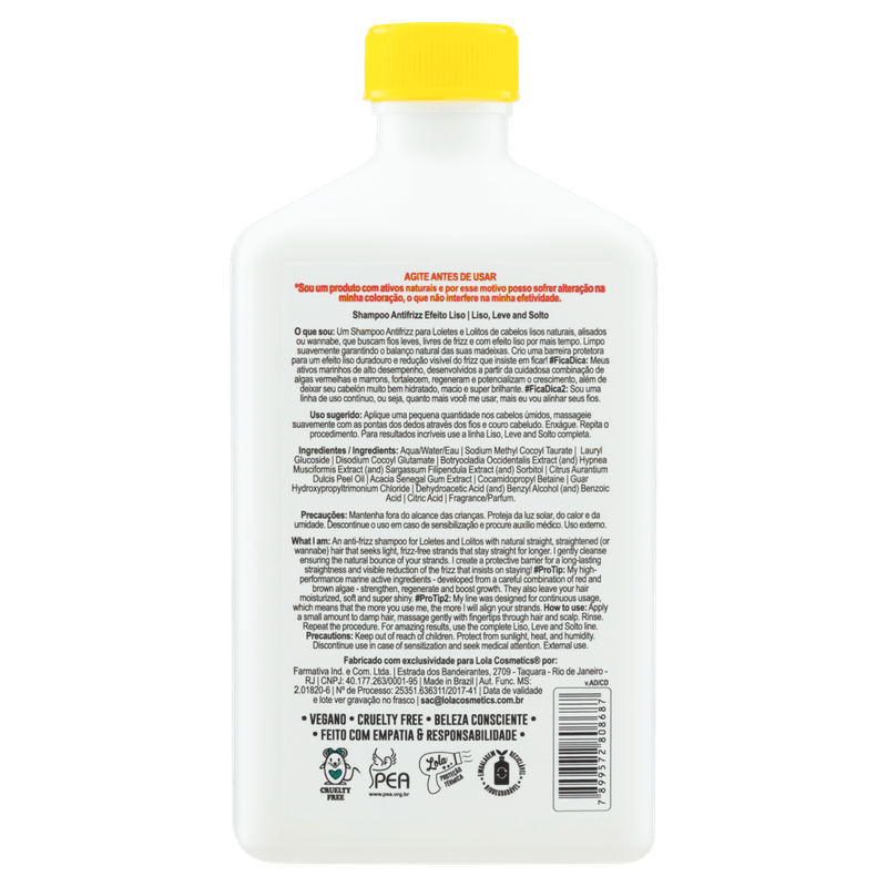 O Shampoo Antifrizz Liso, Leve e Solto de Lola Cosmetics limpa suavemente os cabelos lisos naturais ou alisados, ajudando a reduzir o frizz e prolongar o efeito liso nos fios.