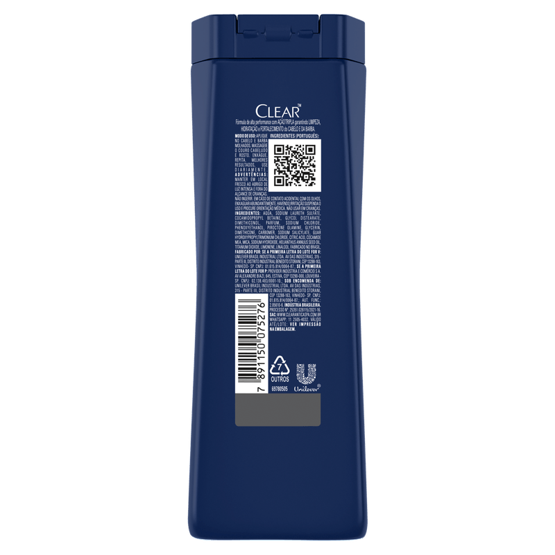 O Shampoo Anticaspa Clear Men Cabelo & Barba 200ml é especialmente formulado para homens que buscam um cuidado eficaz contra a caspa no cabelo e na barba. Sua ação dupla combate a caspa, limpa profundamente e deixa a pele do couro cabeludo e do rosto saudável, promovendo frescor e bem-estar diário.