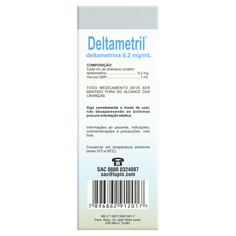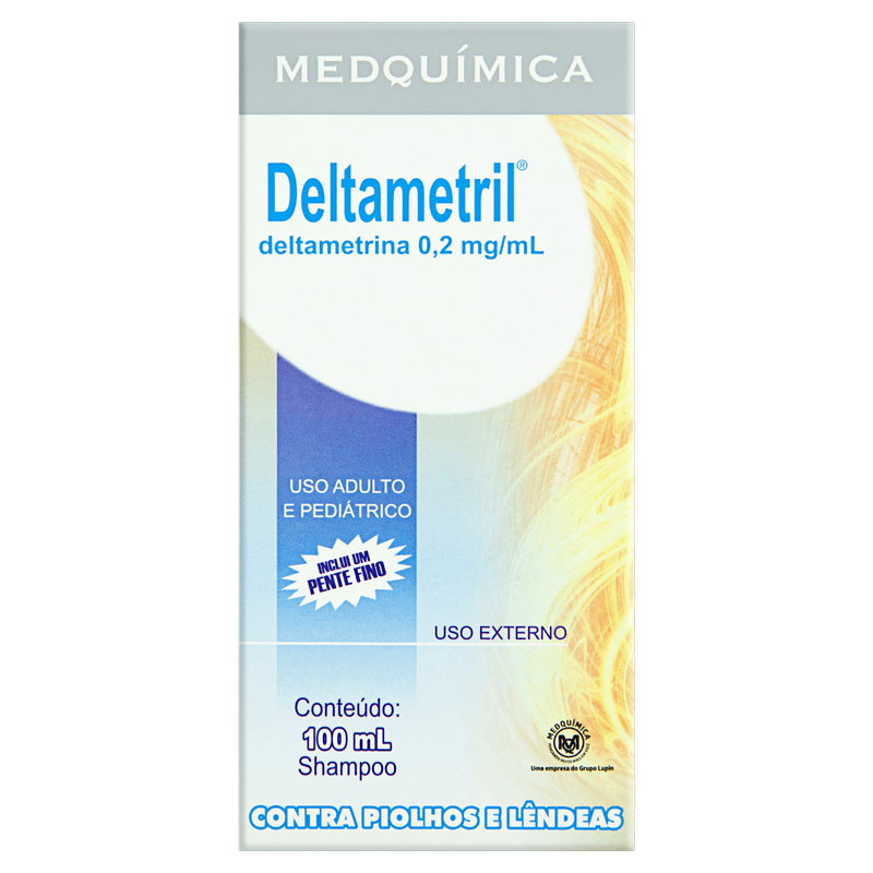 O Deltametril apresenta textura em shampoo, facilitando a aplicação e distribuição no couro cabeludo. Cada embalagem contém 100 ml do produto, que vem acompanhado de um pente fino para auxiliar na remoção das lêndeas. Sem tarja e sem necessidade de prescrição médica, é indicado para uso tópico em adultos e crianças. Sua fórmula contém deltametrina, um inseticida tópico que age diretamente contra os parasitas, garantindo eficácia e segurança no tratamento.