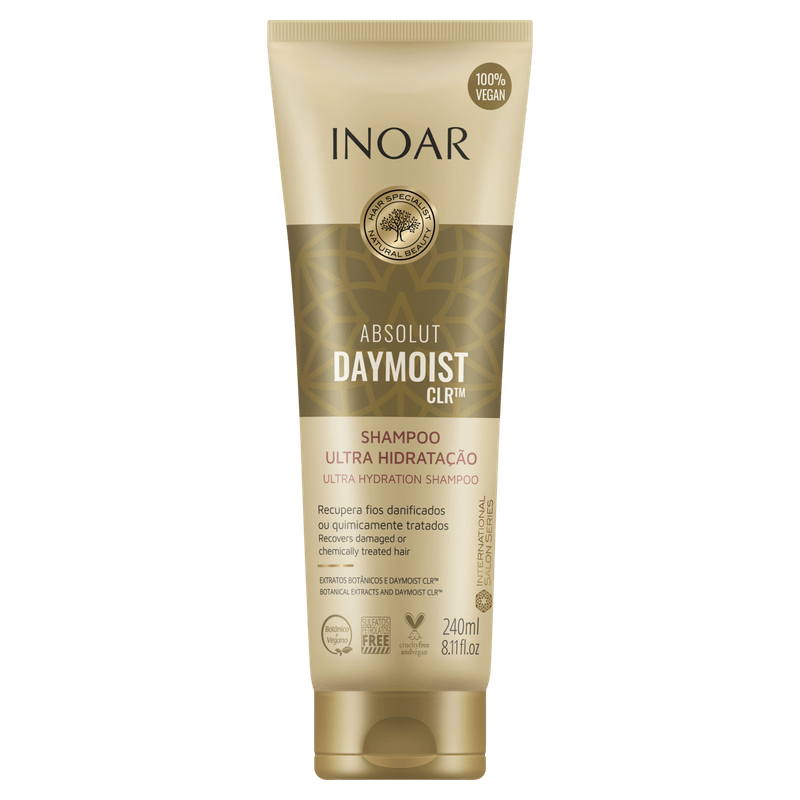 O Shampoo Absolut DayMoist Hidratante Reparador 240ml Inoar é ideal para cabelos danificados pela ação do calor. Com máximo poder emoliente e ação ultra hidratante, promove intenso condicionamento e brilho, recuperando a maleabilidade dos fios. Sua fórmula com extratos botânicos, Amido de Milho, Beterraba e tecnologia DayMoist CLR restaura, protege e evita o desbotamento da coloração, deixando o cabelo sedoso, macio e fortalecido.