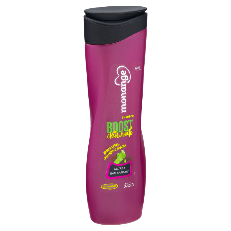 Modo de Usar: Aplique no cabelo molhado, massageie até formar espuma e enxágue bem. Para melhores resultados, utilize a linha completa Monange Boost Crescimento.