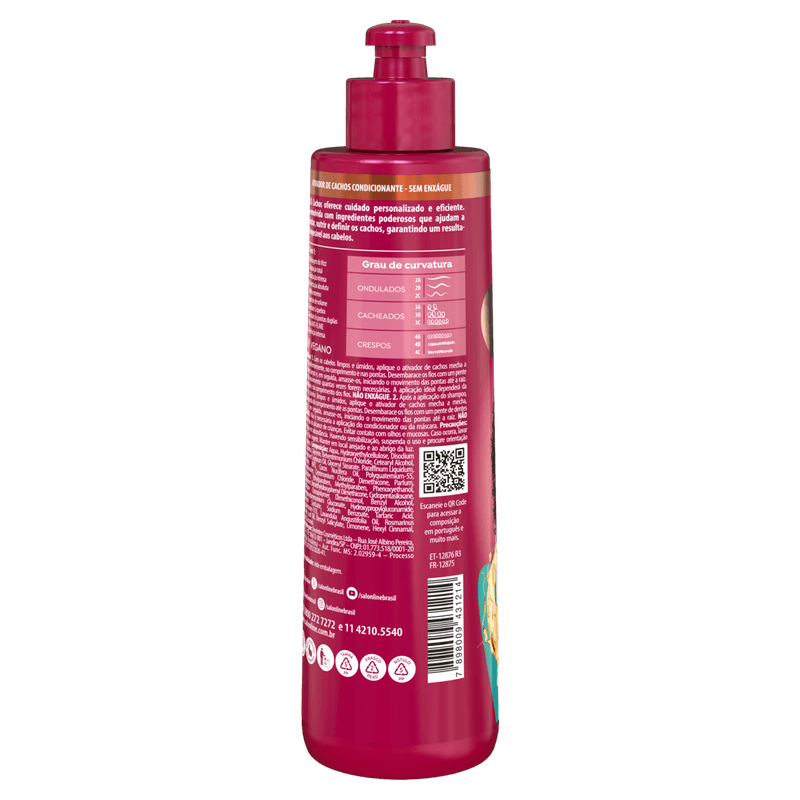 O Ativador de Cachos SOS Cachos 10 em 1 Multibenefícios 300ml é enriquecido com microqueratina, silicone e proteína do arroz, ativos potentes para um tratamento eficaz. Essa poderosa combinação recupera, trata e reconstrói os fios danificados. Definição intensa, fios 5 x mais reparados e brilho extremo.