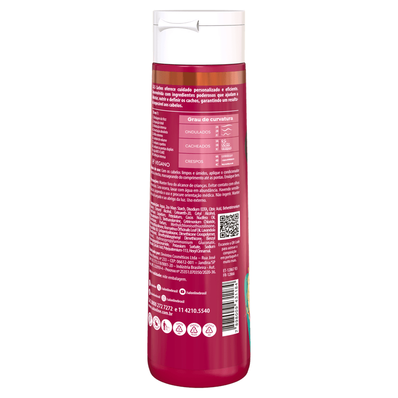 Modo de Usar: Após usar o Shampoo S.O.S Cachos + Poderosos, aplique o condicionador no cabelo molhado. Massageie suavemente de 1 a 3 minutos e enxágue completamente. Para melhores resultados, utilize a linha completa S.O.S Cachos + Poderosos Salon Line.