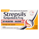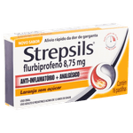 Strepsils Flurbiprofeno atua diretamente na mucosa bucal, proporcionando ação analgésica e anti-inflamatória local. Apresentado em embalagem com 16 pastilhas, possui textura sólida e sabor agradável de laranja sem açúcar. É indicado para alívio da dor de garganta em adultos e adolescentes, com venda sob prescrição médica (tarja vermelha). O produto deve ser armazenado em local seco, fresco e protegido da luz e umidade para manter sua eficácia.