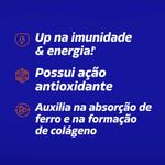 Cada comprimido contém 500 mg de vitamina C (ácido ascórbico) e 500 mg de aspartato de arginina, ingredientes que atuam na redução do cansaço e estresse, além de fortalecer a imunidade. O produto é indicado para adultos, possui venda livre e é apresentado em embalagem com 30 comprimidos revestidos, sem sabor especificado. Este suplemento não é medicamento e deve ser usado com responsabilidade.