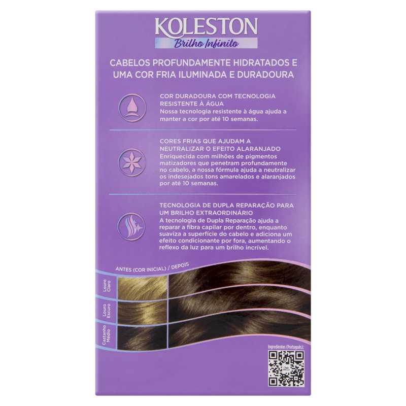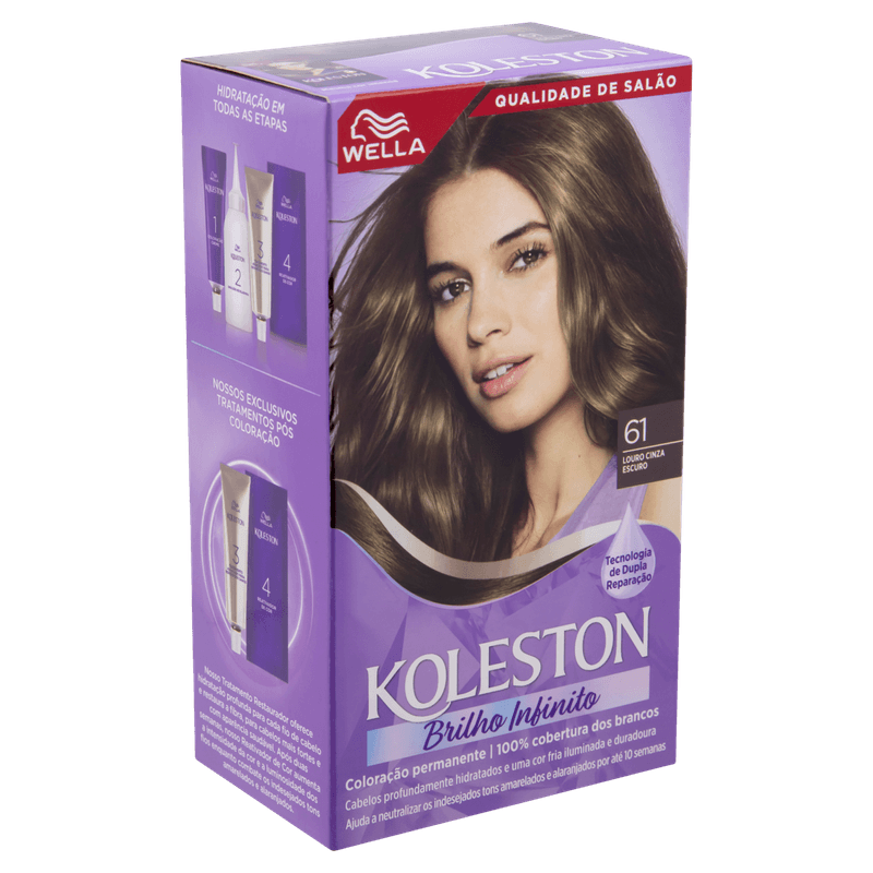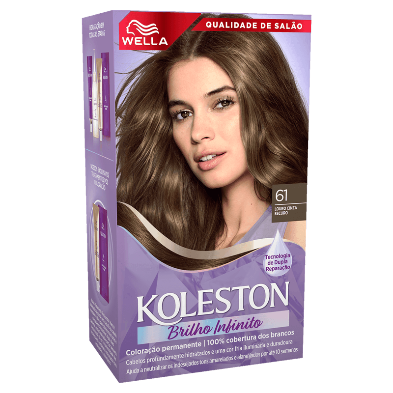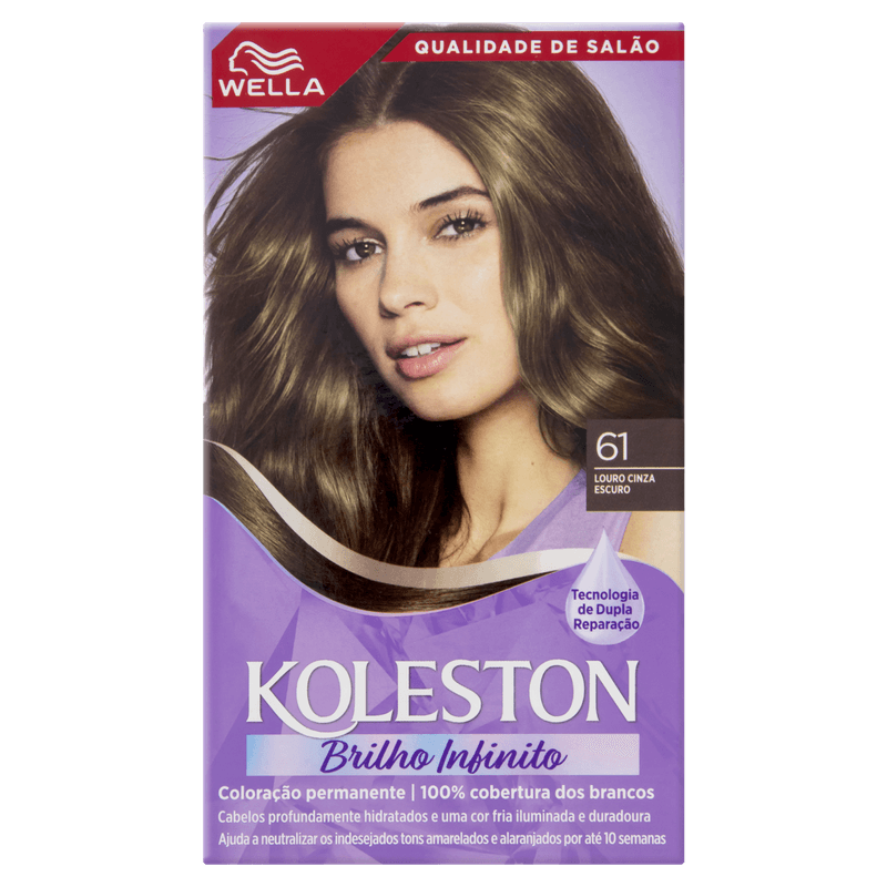 A Coloração Permanente Koleston Wella 61 Louro Cinza Escuro oferece uma cor intensa e duradoura com alta cobertura dos fios brancos. Sua fórmula exclusiva inclui o Tratamento Gloss Intenso, que cria uma camada protetora nos cabelos, proporcionando brilho, maciez, hidratação e nutrição, além de preservar a vivacidade da cor por mais tempo.