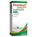 Cada cápsula contém 400 mg de acetato de racealfatocoferol, equivalente a 4000% da Ingestão Diária Recomendada (IDR). O produto é apresentado em embalagem com 30 cápsulas, sem sabor especificado, e é indicado para uso oral. A textura é a de cápsulas gelatinosas, facilitando a ingestão. Não requer prescrição médica e não possui tarja. Este medicamento deve ser mantido fora do alcance das crianças e, caso os sintomas persistam, é fundamental procurar orientação médica. Informações detalhadas sobre indicações, contraindicações e precauções estão disponíveis na bula.