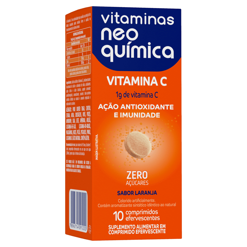 Este suplemento atua diretamente no fortalecimento do sistema imunológico e na proteção antioxidante das células. Apresenta-se em comprimidos efervescentes, facilitando a absorção e o consumo, com sabor laranja que torna a ingestão mais agradável. Cada embalagem contém 10 comprimidos, indicada para adultos, sem necessidade de prescrição médica. Contém glúten e é isento de registro no Ministério da Saúde. Este produto não substitui uma alimentação equilibrada e seu consumo deve ser orientado por nutricionista ou médico.