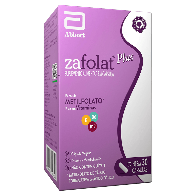 Zafolat Plus Abbott apresenta cápsulas veganas, sem glúten, e é livre de tarja, com venda liberada sem necessidade de receita médica. Cada embalagem contém 30 cápsulas em formato oral, com textura adequada para fácil ingestão. A ação esperada inclui suporte ao sistema imunológico, aumento da energia e proteção antioxidante, atuando diretamente na prevenção de deficiências nutricionais relacionadas ao ácido fólico e vitaminas do complexo B. Este suplemento é ideal para mulheres em idade fértil e gestantes que buscam manter a saúde e o bem-estar durante fases importantes da vida.